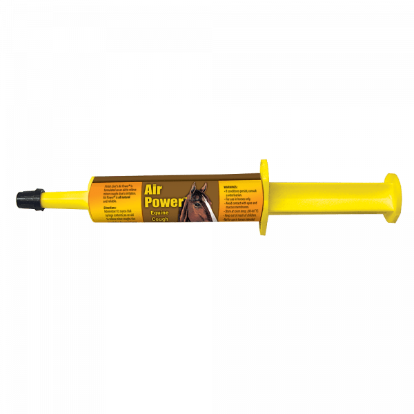 Air Power is an all-natural aid in the relief of minor coughs due to irritation. This all-natural formula uses ingredients such as Honey, Menthol, Eucalyptus Oil, Lemon Juice, Aloe Vera, Apple Cider Vinegar, and Ethanol to help stop a horse’s cough. Usually, one dose of Air Power will stop a horse from coughing for 4 hours. Safe for pre-event, race, or performances.