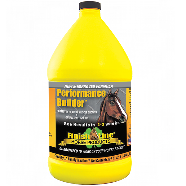 Support muscle development and function in your performance horse with the Finish Line Performance Builder Horse Supplement. Carefully developed over a three-year period, this formula is not a steroid and is safe for horses who are weanlings and older. This product contains only ingredients that support healthy muscle development in the horse, such as spinach, pea protein and L-leucine, so you can feed it with confidence. It won’t change your horse’s temperament, but you can expect to see changes in your horse’s physical appearance in just two to four weeks. This liquid supplement makes for easy grain top dressing and its butterscotch flavor appeals to even the picky eater. Whether you want a sales prospect to look his best or are preparing your horse for the show ring, this supplement can support the conditioning work that you’re already doing.