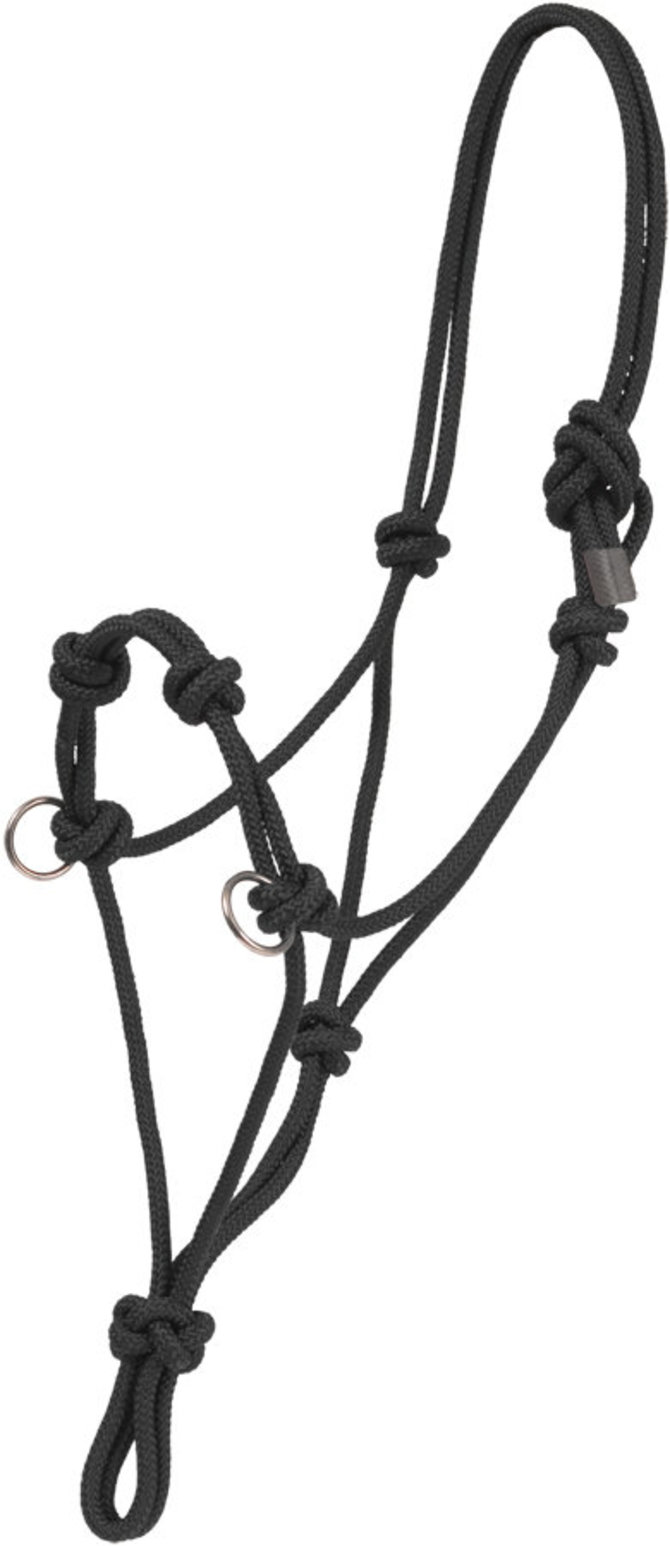 Cabestro de cuerda de tracción lateral de Mustang Mfg. Permite entrenar a un caballo joven o disfrutar de un caballo mayor sin la incomodidad de usar un bocado. HALTER PARA CABALLOS DE TIRO LATERAL PUNTOS CLAVE: cuatro nudos en la muserola agregan más presión para proporcionar más control debe quedar ajustado a cada lado de la nariz plomo no incluido De color negro