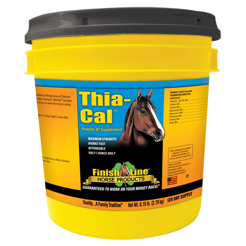 Thia-Cal™ promotes healthy nerves in your horse in a daily feed supplement. This is a potent Thiamine and Magnesium supplement balanced with Calcium. No tryptophan, no valerian root, and no kava kava are found in this product. Thia-Cal™ helps conserve energy while calming and settling your horse. This product will not make horses “dopey,” dull or pull from your horse’s performance.